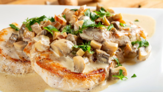 Лук и грибы мелко нарезаю, приправляю солью и перцем, по желанию добавляю чеснок и тимьян. Куриный фарш солю, перчу, добавляю копченую паприку и хорошо вымешиваю до однородности. Формирую котлеты примерно по 120 г и выкладываю их на противень, застеленный пергаментом.