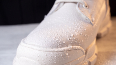 - Нанесение на влажную обувь. Поры материала уже забиты водой, и защите некуда впитаться.