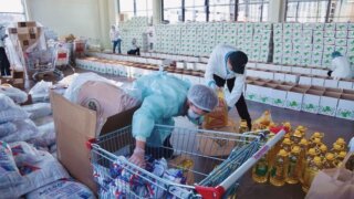 Волонтёры работают как хорошо отлаженный механизм – одни отвечают на звонки и составляют списки нуждающихся, другие – собирают пожертвования, третьи – сортируют продукты, привезённые предпринимателями, и развозят продуктовые корзины многодетным, малоимущим, а также пожилым людям. В продуктовой корзине более 10 товаров – мука, консервы, макароны, масло, хлеб, крупы, овощи, моющие средства, иногда печенье и конфеты. Что очень важно, – волонтёры соблюдают все меры безопасности: измеряют тепловизором температуру, носят маски и одноразовые халаты.