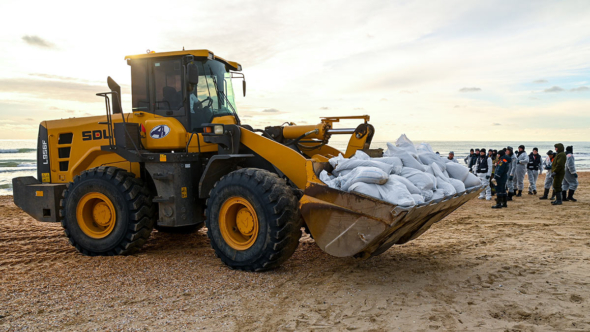 Отмечается, что темпы, с которыми замазученный грунт привозят на основную точку сбора загрязненного песка с разных участков берега, значительно сократились.