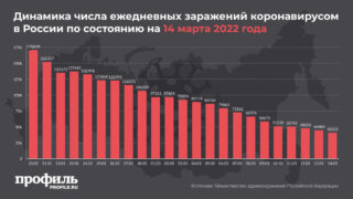 Как сообщает в понедельник, 14 марта, оперштаб по борьбе с распространением заболевания, количество госпитализаций за сутки составило 2712 человек. За сутки скончались 533 человека.