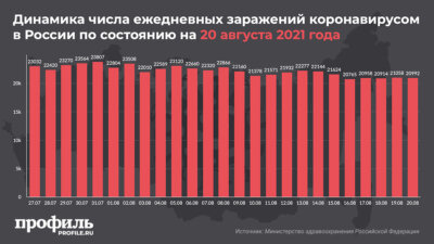 "За последние сутки в России подтвержденных случаев новой коронавирусной инфекции COVID-19 – 20992 в 85 регионах, в том числе выявлено активно 1588 (7,6%) без клинических проявлений", – говорится в сообщении.