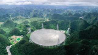 Телескоп FAST расположен в округлой карстовой впадине на юго-западе китайской провинции Гуйчжоу. Строительство завершили в сентябре 2016 года.