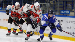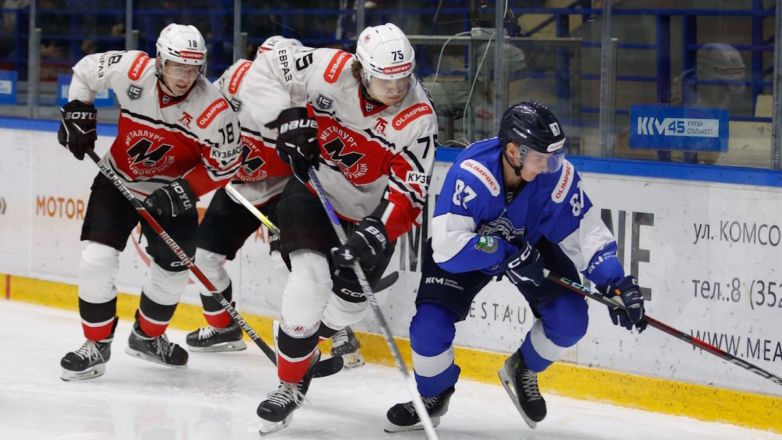 Участники хоккейного матча между ХК "Металлург" (Новокузнецк) и ХК "Зауралье" (Курган) (иллюстрация)