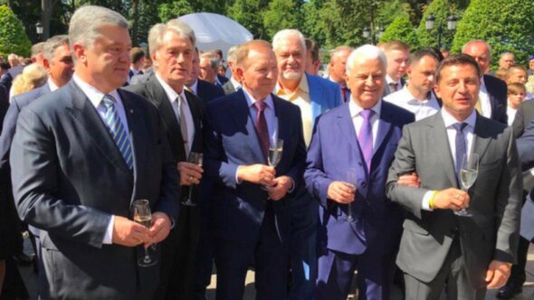 Компанию на приеме президентов Порошенко составили нынешний лидер Украины Владимир Зеленский, а также все экс-президенты, кроме Виктора Януковича: Леонид Кравчук, Леонид Кучма и Виктор Ющенко.