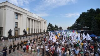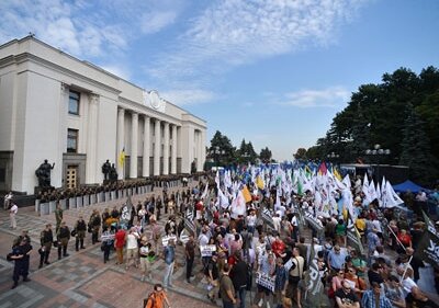 Верховная Рада в понедельник приняла в первом чтении поправки к Конституции, касающиеся децентрализации госустройства Украины, предписанной минскими соглашениями «нормандской четверки» об урегулировании конфликта на Донбасе. Пока шло заседание, на площади Конституции около здания парламента проходил митинг противников реформы, который начался еще в 9 утра. По свидетельствам очевидцев в соцсети Twitter, число собравшихся превысило тысячу человек, которые пришли с флагами партий «Укроп», «Республиканская платформа», ВО «Свобода» и «Радикальной партии Олега Ляшко».