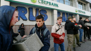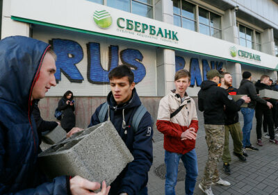 В последние недели на Украине усиливается борьба с «российской оккупацией». Националисты с декабря прошлого года продолжают транспортную блокаду самопровозглашенных ЛНР и ДНР, которые в ответ ввели на украинских предприятиях «внешнее управление». В середине марта к блокаде добавилось наступление на российские банки. Активисты заложили бетонными блоками вход в офис украинской «дочки» Сбербанка и закидали камнями офис Альфа-банка в Киеве. Власти, поколебавшись, решили оседлать эту волну.